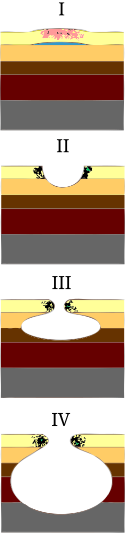- Štádium III zahrňuje všetky vrstvy kože zasahujúc, ale neprenikajúc cez podkožné tkanivo. Toto podkožné tkanivo má relatívne slabé zásobovanie krvou a môže sa ťažko hojiť. V tomto štádiu môže vzniknúť výmol, ktorý urobí ranu omnoho väčšou ako vyzerá zhora.