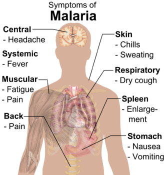| Prevencia: | profylaktické lieky: chinín, Lariam, Malarone, doxycyklín; spreje proti hmyzu, ochranné siete atď. |
