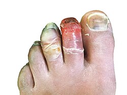 Omrznuté prsty na nohe 2 dni po horolezeckom výstupe